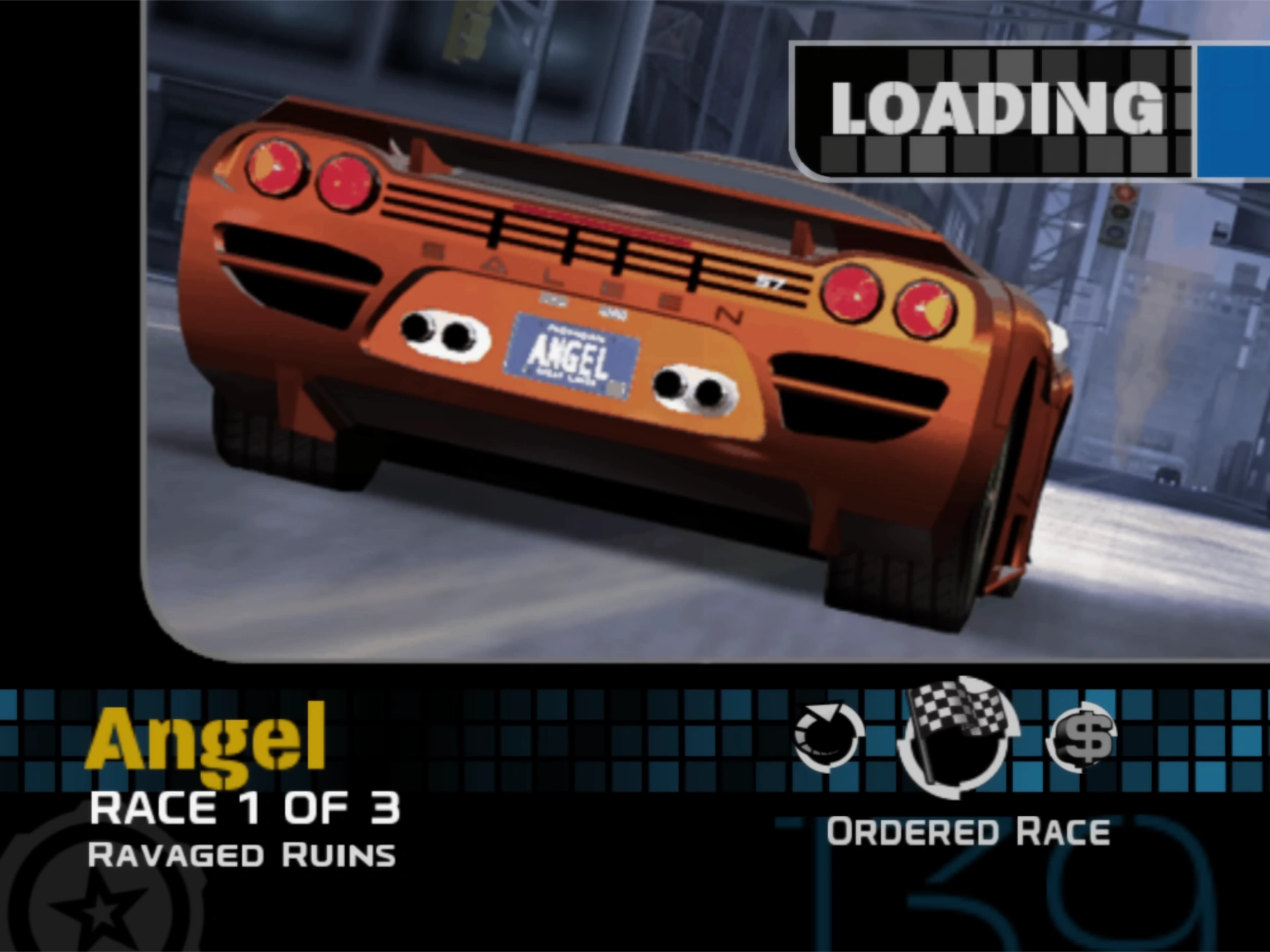 Angel drives a Saleen S7 when the player first encounters him in Detroit. He later participates in the US Championship Series in Atlanta where he drives a Cadillac Cien.