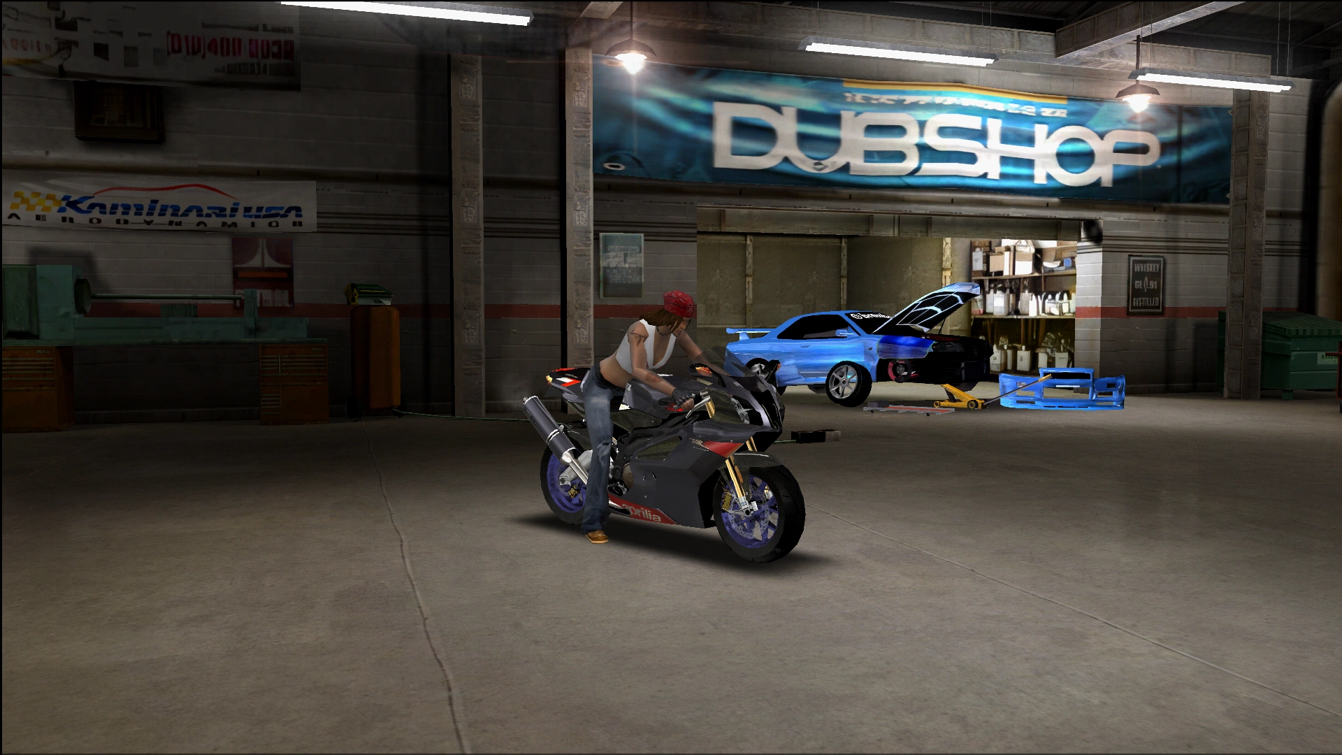Kioshi rides an Aprilia RSV1000R Mille Factory in her first encounter. She later switches to the Kawasaki Ninja ZX-12R for the U.S. Championship Series.