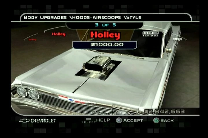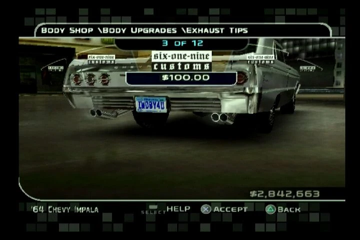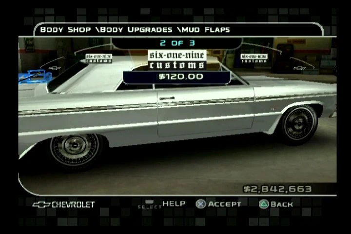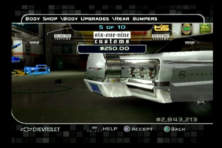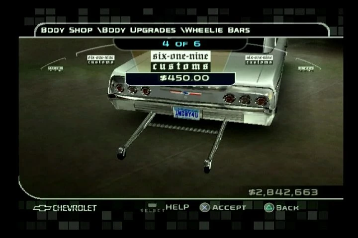 Motorcycles have a different Body Shop menu than four-wheeled vehicles. Both Choppers and Sport Bikes have the option to change Riders and Wheels while Sport Bikes also allow players to change the Muffler Material.
