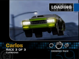 Carlos is one of the first challengers the player meets in San Diego. He is a member of the American Royalty Car Club. The player goes through three races with him in order to earn the right of access to the American Royalty Car Club. Carlos drives a Emerald Green 1978 Chevrolet Monte Carlo with a plate reading "CARLOWS". Initially, the player must race him, Vanessa and Bishop in the Rites of Passage Ordered Race.