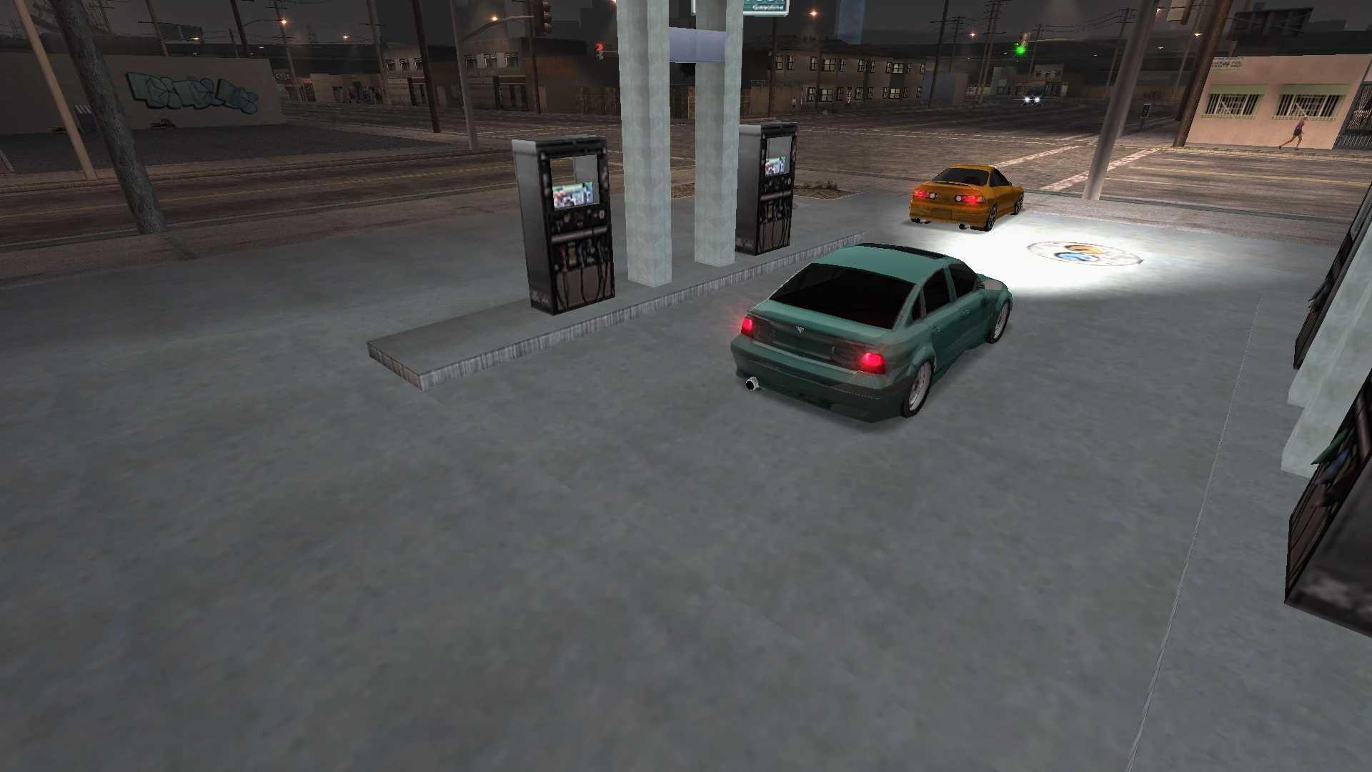 This race has the player in the game's second head-to-head match. It begins at the aformentioned gas station, and takes you for a twisted ride through both the Watts district and the industrial park. With plenty of turns requiring the ability for precise maneuvering, the Citi is recommended, as its acceleration and cornering capabilities prove to be ideal. A rundown of the scripted traffic, though being quite extensive, is as follows: heavy traffic near Snapper Place (in-game reference to the Staples Center, which hosts the Los Angeles Kings), a police car and an SUV on the road to the right of the stadium, a parked SUV, another in a gas station and a parked moving truck a block from a large complex, a police vehicle attempting to apprehend the player a block south of downtown, another SUV in yet another gas station in the industrial park, a mid-size sedan passing through a four-way intersection, followed by a police barricade in the Watts district, a compact sedan leaving a convenience store, a series of idle police cars acting as a barricade leading into Santa Monica, and lastly, an SUV crossing an intersection near the promenade adjacent to the finish line. Upon completion, and amidst her state of tantrum and resent, Maria hands over the keys to her bright orange Torrida.
