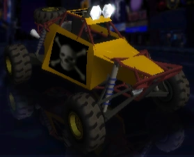 Although the Baja Buggy in Smuggler's Run can appear in multiple colors, in Midnight Club: Street Racing it is colored only with a red chassis and mustard yellow fenders. It also has a skull in its doors, the same skull decal as the Zender Beta.